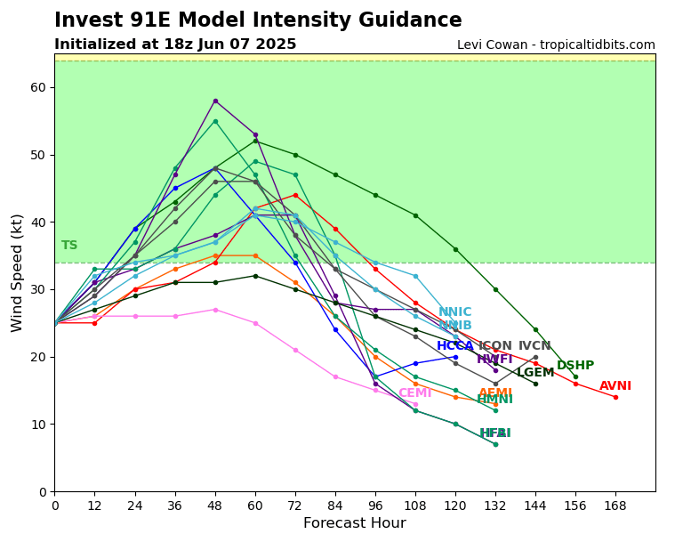 Intensity Over Time for Invest 91E // Courtesy: Tropical Tidbits – tropicaltidbits.com