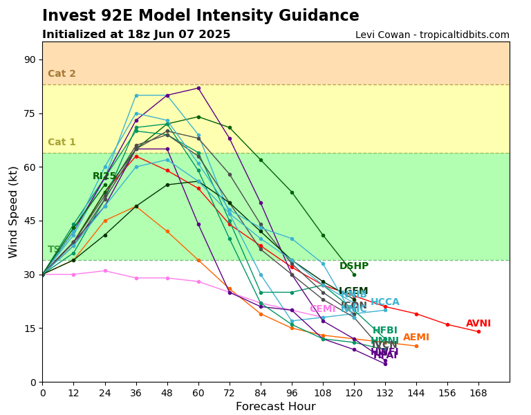 Intensity Over Time for Invest 92E // Courtesy: Tropical Tidbits – tropicaltidbits.com