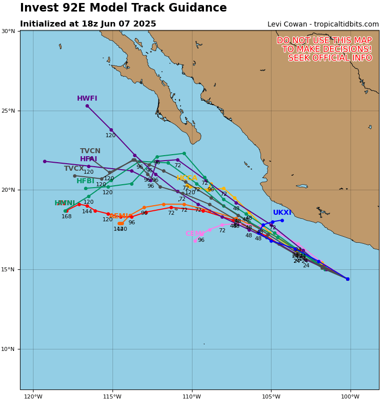 Model Tracks for Invest 91E // Courtesy: Tropical Tidbits – tropicaltidbits.com