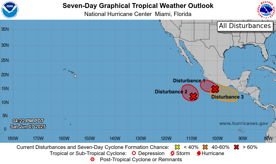 NHC Plot of the 3 Pacific Disturbances // Courtesy: National Hurricane Center – nhc.noaa.gov
