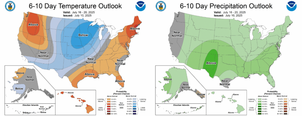 Looking at teleconnections like the ABNA and PNA, the signal is there for a warmer than average period in the 5-10 day time frame. This is corroborated both by models and the Climate Prediction Center prediction. Frontal activity in the central United States may cause increased rainfall in the 6-10 day time frame.