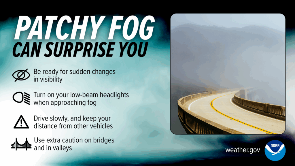 Nightly near-surface temperature inversions combined with a lack of wind and clouds aloft could contribute to fog at night and in the early morning. Be cautious when driving.