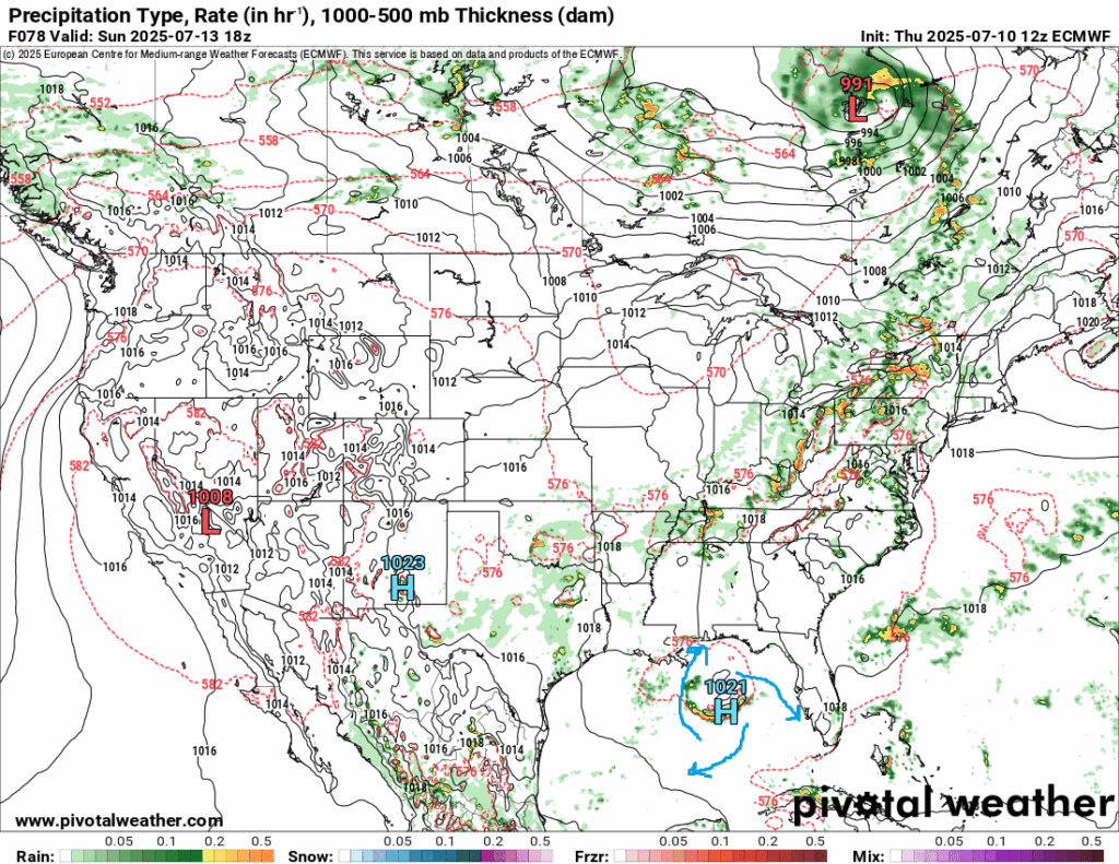 Sunday is when the best chance of rain is. A high pressure looks to form over the Gulf of Mexico, which will aid in moist air advection as it blows in air from the Gulf. I would expect more widespread coverage of showers and thunderstorms. Most in the forecast area will see between a quarter inch and a half inch of rain the next 3 days, with locally higher amounts in thunderstorms.