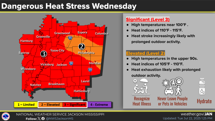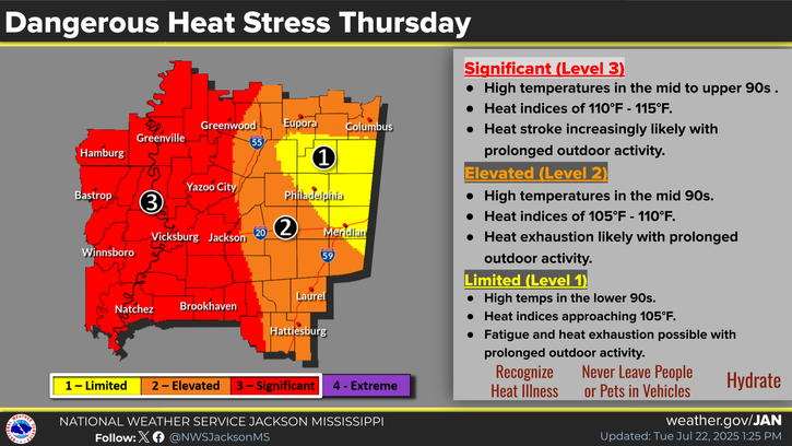 Dangerous heat indices will continue for tomorrow, so everything said about the heat for today will also stand for tomorrow.