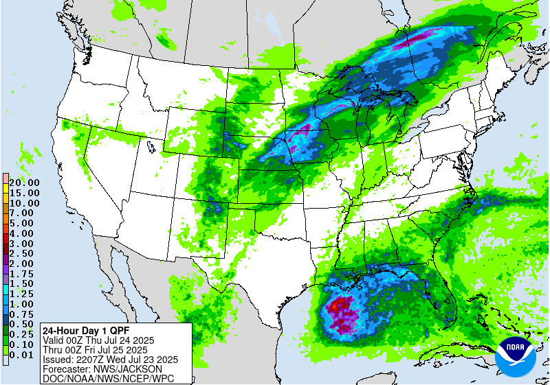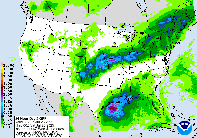 The WPC has highlighted the Gulf as having a 20% chance of developing a tropical storm late next week. We’ll be watching to see if and how this unfolds, but any potential system could provide both relief from the high temperatures, and flooding for the already saturated soil of our forecast area.