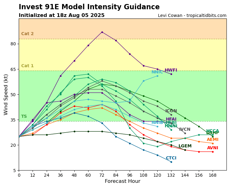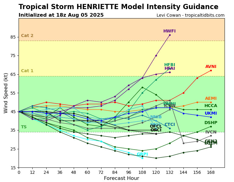 It’s looking like Henriette is done intensifying for the most part, and will stay steady or weaken over the next few days. After Day 4 the models get a bit wacky, which is not surprising, so it is pretty safe to say that later into the week and into the weekend Henriette will start to weaken.