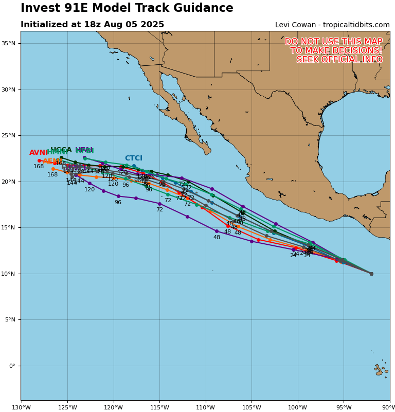 Looking at the forecasted storm tracks from various ensemble models, this system will likely get steered further westward, fortunately avoiding landfall on Mexico.