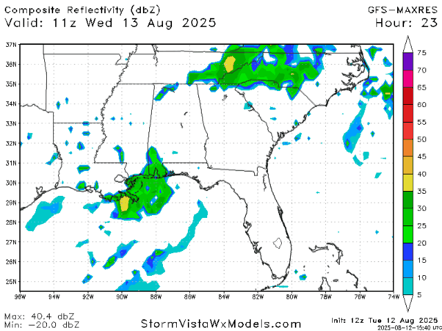 If you are on the Gulf Coast, you can expect rain throughout the morning and afternoon, then subsiding by the evening, around 8 or 9pm. These persistent showers are due to a surface trough over the Gulf, but because this system will move over land today and dissipate, there is no need to worry about any tropical development. Further inland, the majority of showers will remain in the afternoon. Here’s the radar for today, as well as how much rain is expected to fall today: