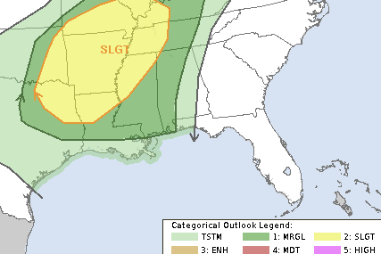 So, we are at a “1” on the 1-to-5 scale. The slight Risk is back to the northwest.