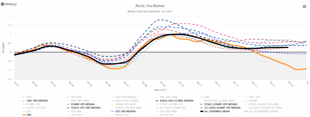 Artic Oscillation model data from September 1, 2025 // Courtesy: StormVista