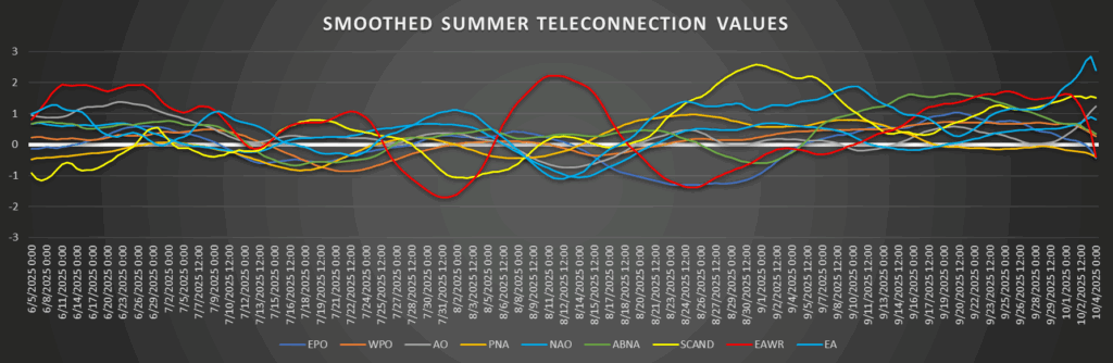 The AO, NAO, PNA, EPO, WPO, ABNA, EAWR, EA, and the SCAND are my favorites to look at for the 6-8 week window. The “AO” shown above goes up and down over a 1-2 week period. Some of the other teleconnections listed above oscillate on shorter timescales, others on longer.