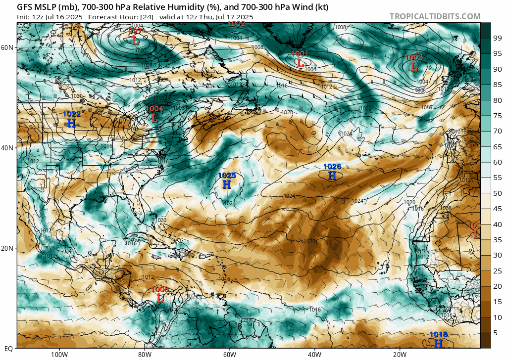 Future Mid-Level Relative Humidity in the Atlantic // Courtesy: Tropical Tidbits
