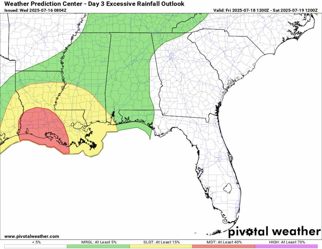 WPC Excessive Rainfall Outlook for Friday 7/18/25 // Courtesy: Pivotal Weather
