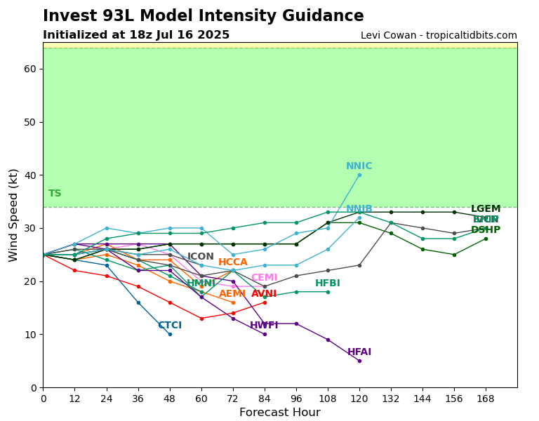 Invest 93L Model Intensity Guidance // Courtesy: Tropical Tidbits