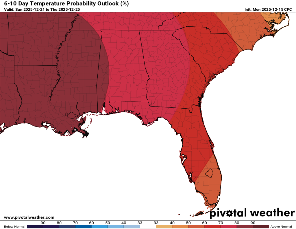 We’re also seeing teleconnections like a negative Pacific North American Oscillation (PNA) and a positive Eastern Pacific Oscillation (EPO), which typically favor a warmer pattern across the South and keep the coldest air bottled up farther north.
