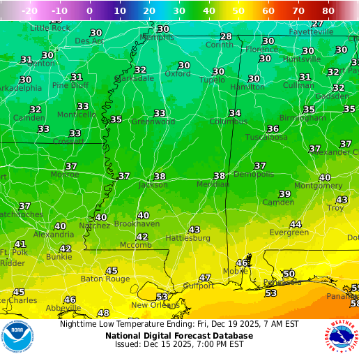 Friday Night: Mostly clear. Lows in the lower 40s. Calm wind.