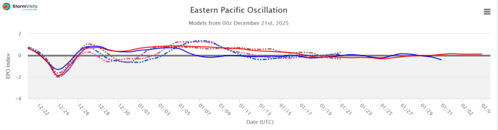 We can see after this dip, the EPO becomes pretty neutral, signaling average temperatures.
