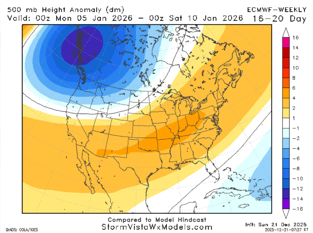Looking ahead to the first week of January, we are coming out of this stubborn ridging pattern. The ridging pattern that is associated with high-pressure systems, warm temperatures, and moderate weather.