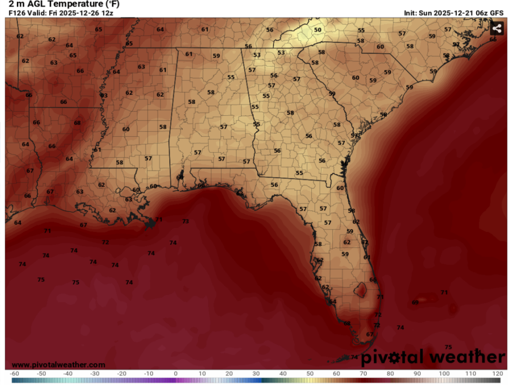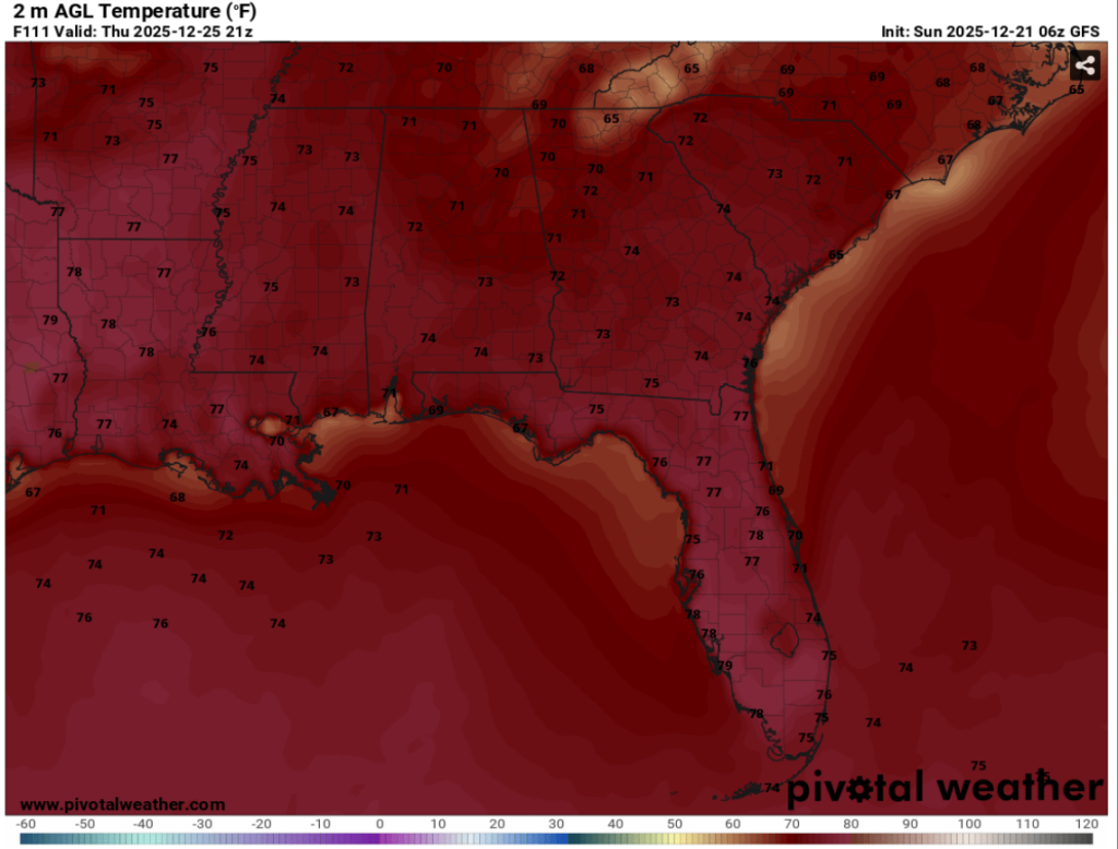 High temperatures on Christmas Day// Courtesy: Pivotal weather
