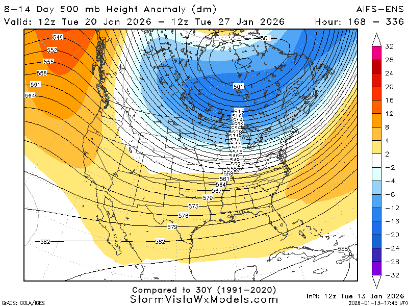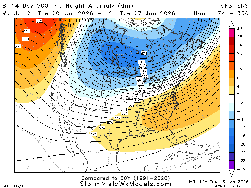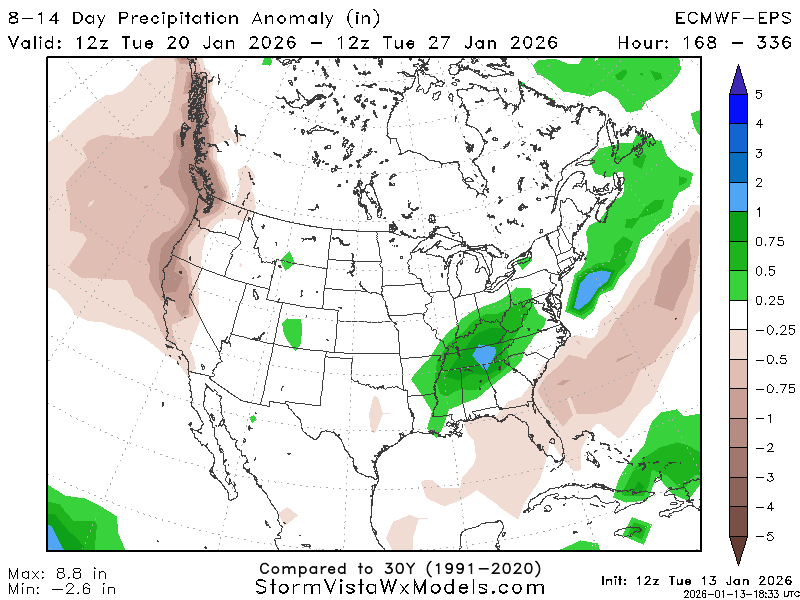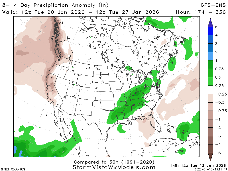 It looks like we are still in that ridging atmosphere, which is why the temperatures are around the average for this period, as high-pressure moderates the temperature. If there are no other forcing mechanisms at play here, we should see average to below-average QPF for this time frame.