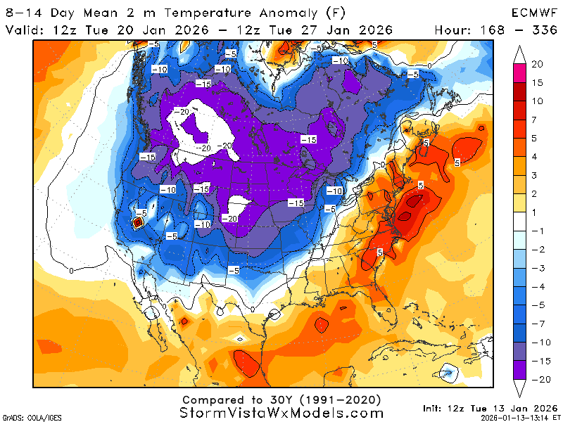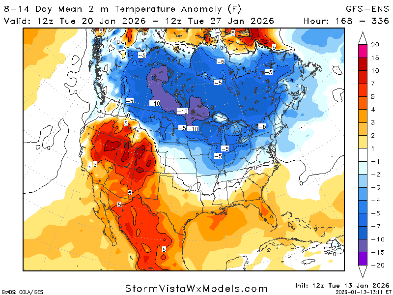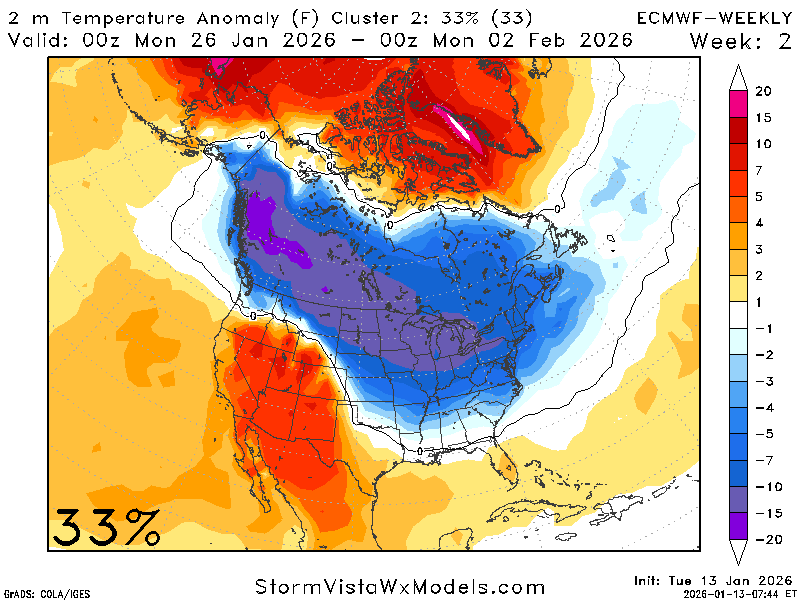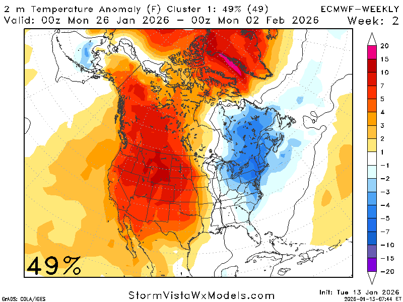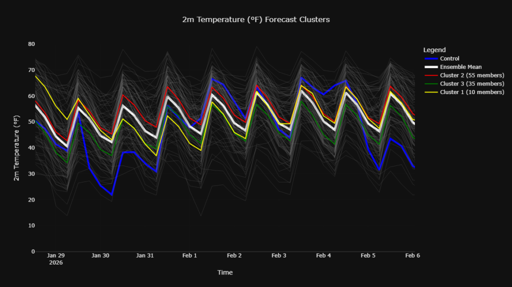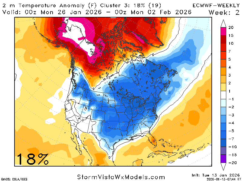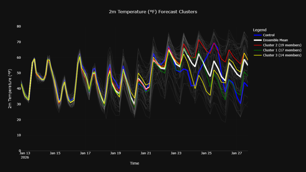 Starting next Wednesday, January 21st, we appear to be in a warming-up trend according to the ensemble clusters, but let’s verify this with some other models.