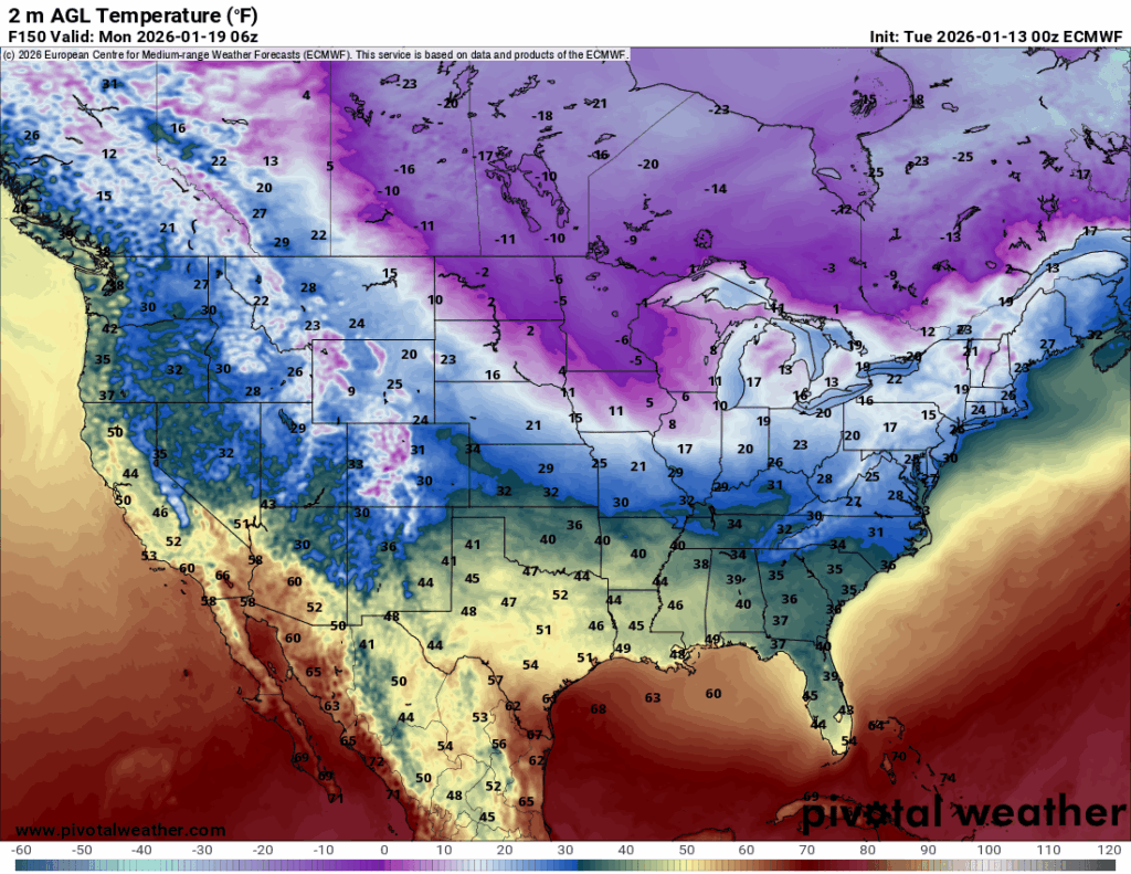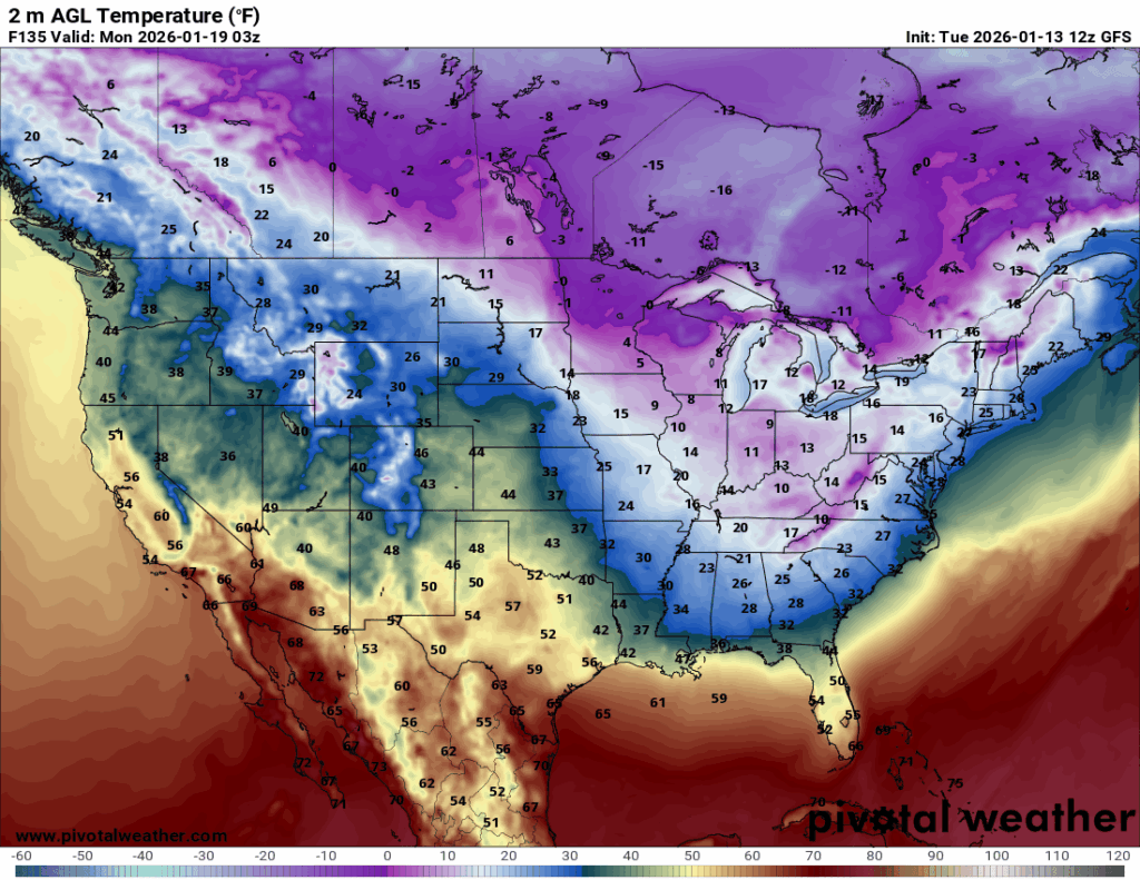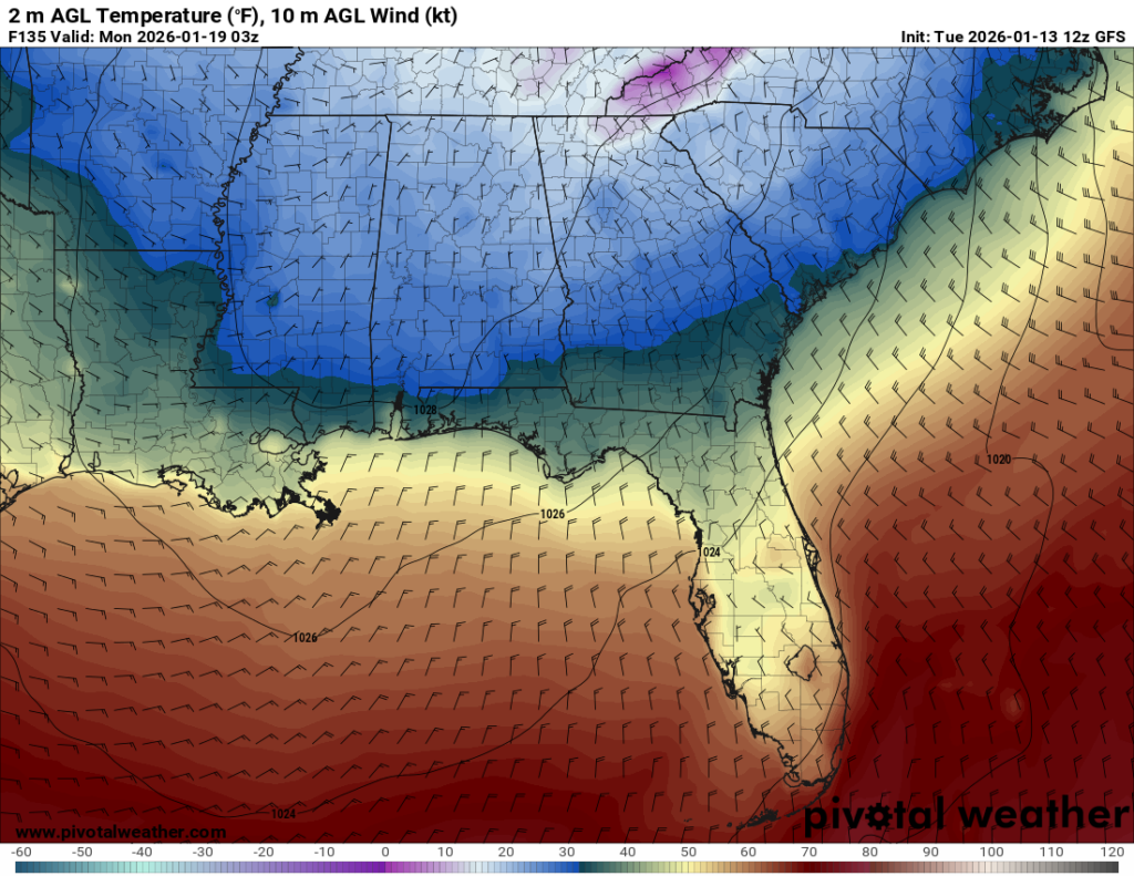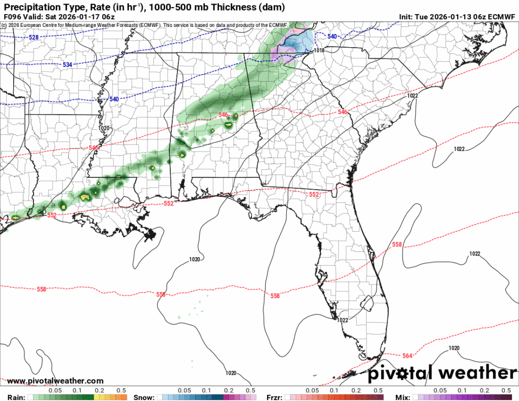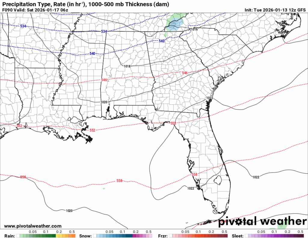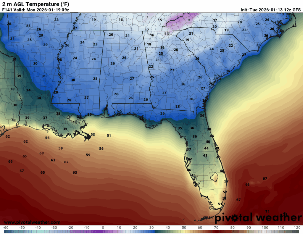 The GFS has cold shots of air reaching all the way down into northern Louisiana, while the ECMWF has it inching into north Mississippi and then fleeing, which is just a small disagreement… I am going to go with somewhere in between, so what does that mean?