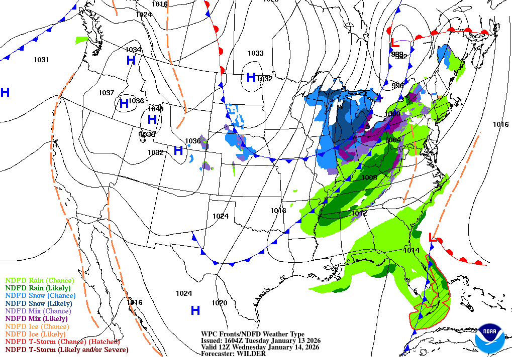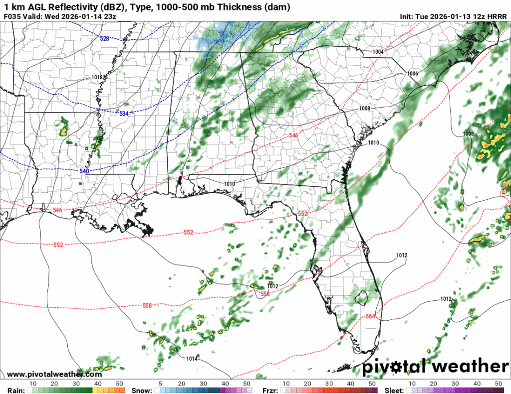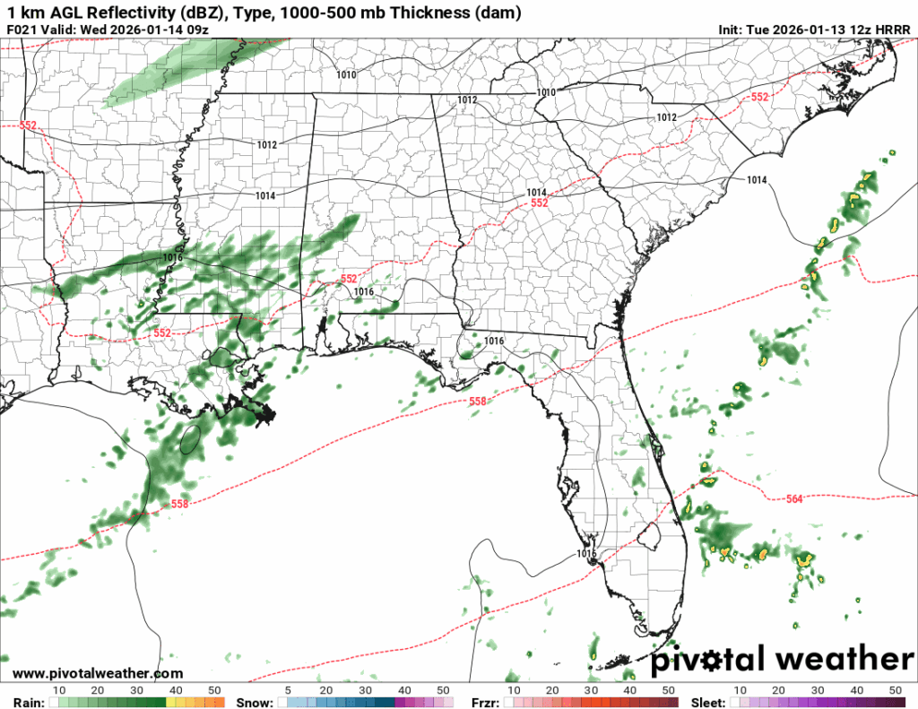 While I am sure you have all seen the online posts (on TikTok… etc) about snow coming to the Deep South… That is not the case. The temperatures on Wednesday will be too warm for any winter precipitation in this region, but there is a chance for some rain.