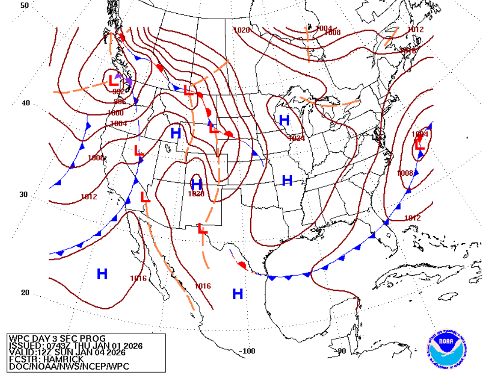 The surface analysis map for Sunday shows that the low-pressure system has completely moved out of our region, and now we are in a region of higher pressure, which is responsible for the cooler temperatures.