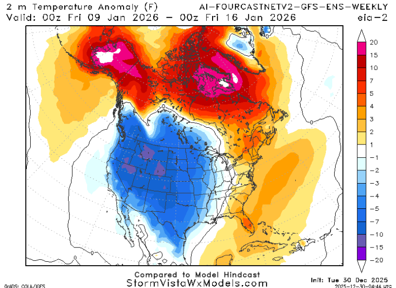 If we have a colder-than-average Alaska, it will be warmer-than-average in the region. If we have a warmer-than-average Alaska, it will be colder-than-average in the region. Currently, the models are in disagreement about what pattern will take shape in the second week of January.
