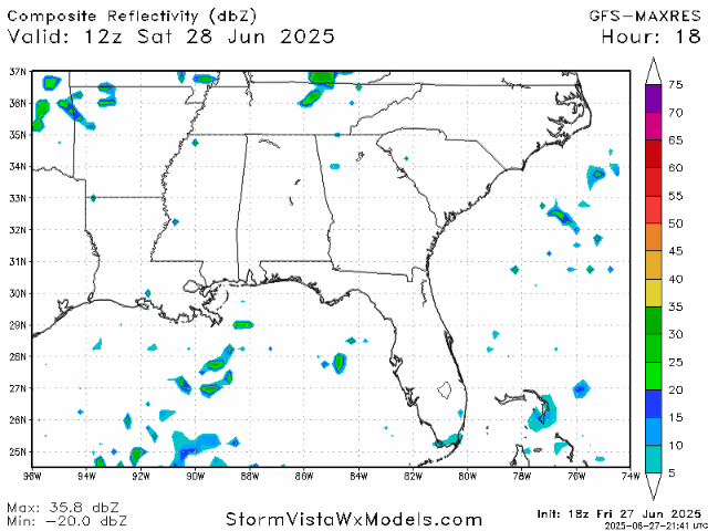 Today we may have a shower or thunderstorm pop up sporadically throughout the late afternoon and evening, and tomorrow the showers will be a bit more persistent throughout the day. Check out the precipitation for today and Sunday:
