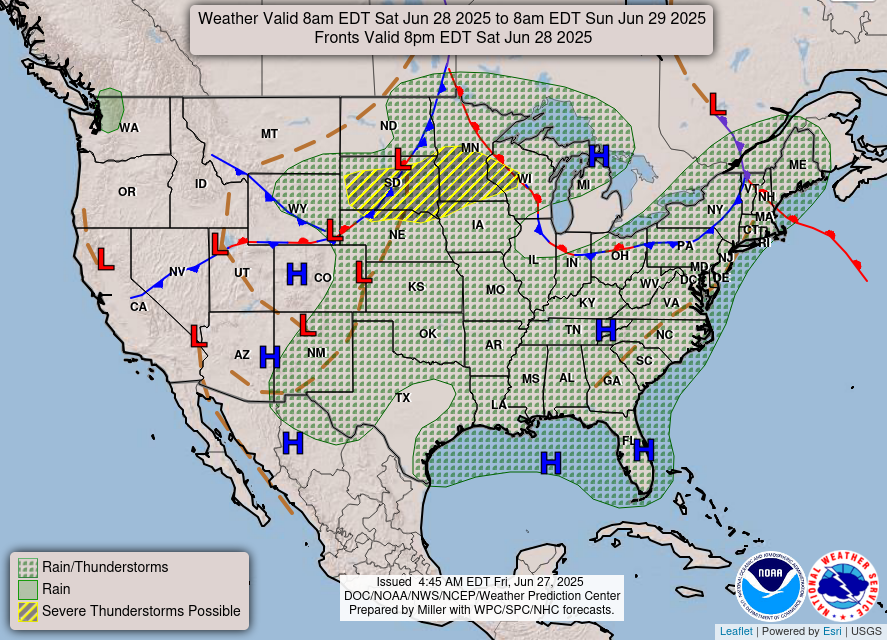 Friday: Mostly sunny in the morning with a chance of afternoon showers and thunderstorms. Highs in the low 90s during the day and lows in the low 70s at night. Chance of precipitation 40%.