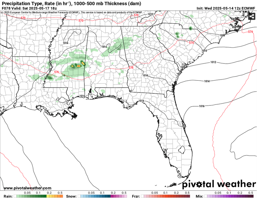 Since the high is moving west, it also decreases rain chances, but that doesn’t mean a few showers and thunderstorms won’t sneak in. The MCS that develops from the front in the mid-South will move southeast, however it will lose most of its strength by the time it passes I-20. A few leftover showers and thunderstorms may be possible during the day, but these look fairly isolated. Another line of storms rolls in from the west overnight and into the afternoon hours, but these look to dissipate by the time they reach us as well. Highs will be in the low to mid 90s and lows in the low 70s.