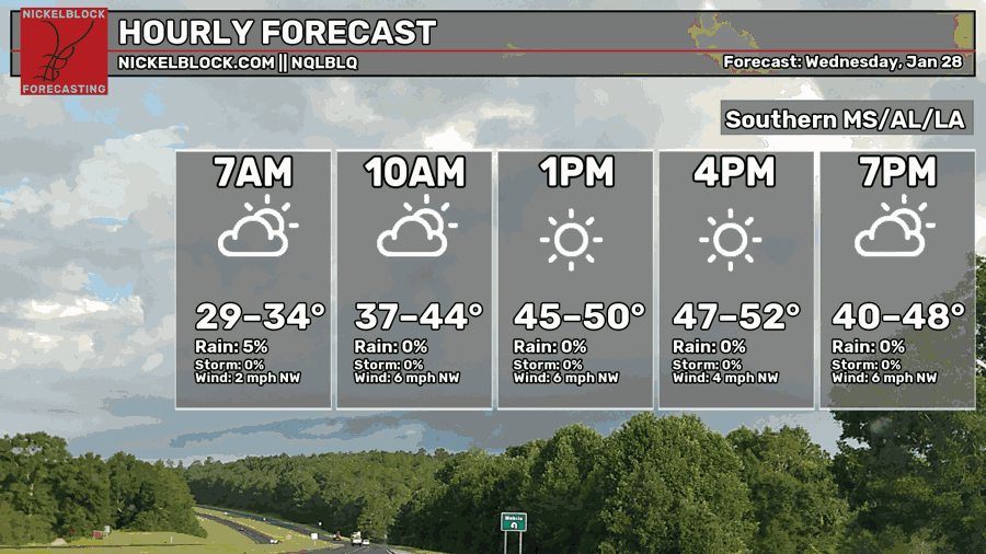 Dry and Cool with Another Cold Snap on the Way – Weekend Forecast for South MS/LA/AL 1/28/26