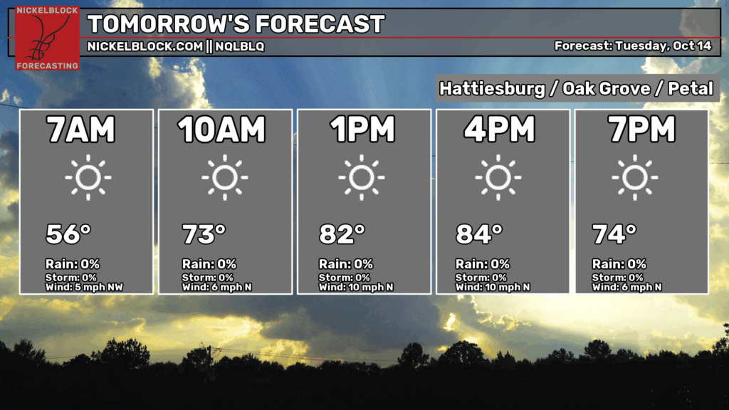 Dry and Warm Week with a Chance of Thunderstorms by the Weekend – Week Ahead Forecast for South MS/AL/LA