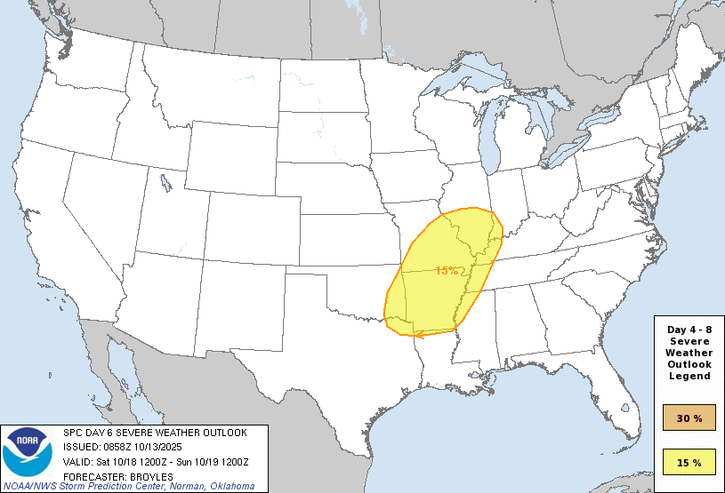 Day 6 severe weather outlook from the Storm Prediction Center