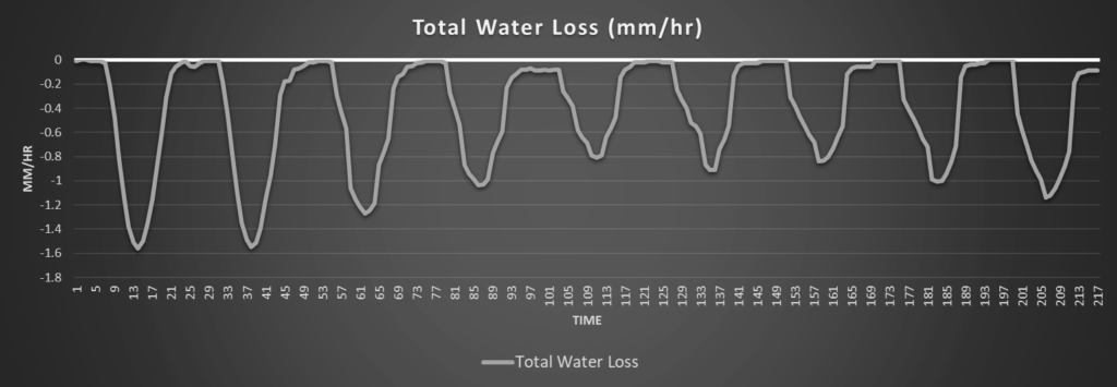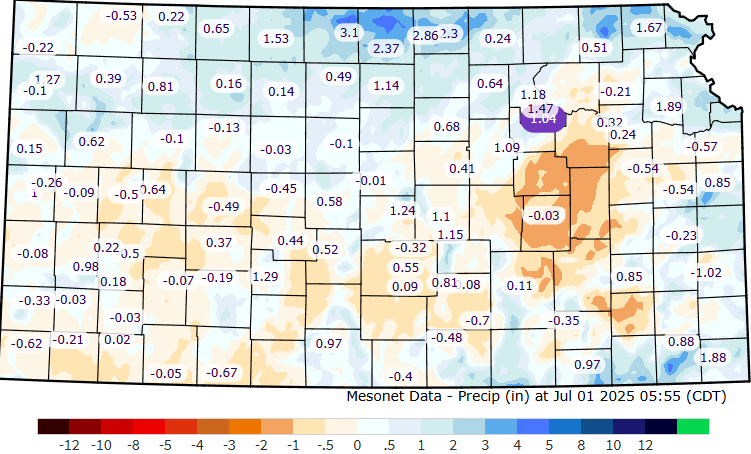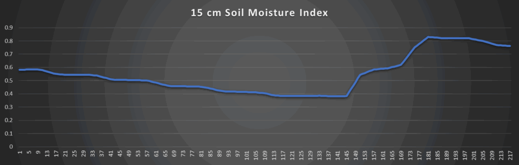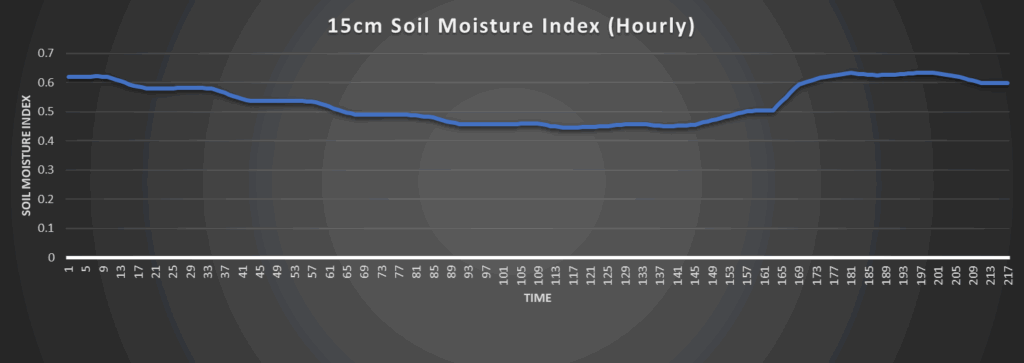 Steady drying of soils will occur over the next few days, as water loss rates increase to between 1 to 1.6 mm/hr during the day. Generally dry conditions will ensue across the region until we get more increased chances for rainfall beyond Thursday. Stresses to crops should not be that big of an issue due to relatively good soil saturation, but some issues may try to present themselves due to overall lack of consistent soaking rainfall over the last week.