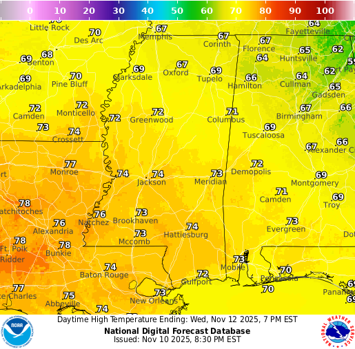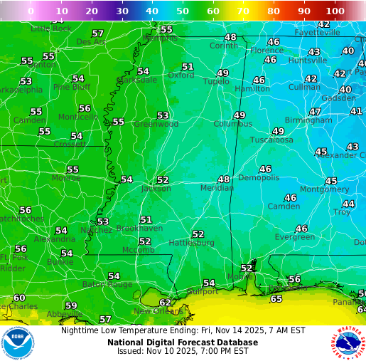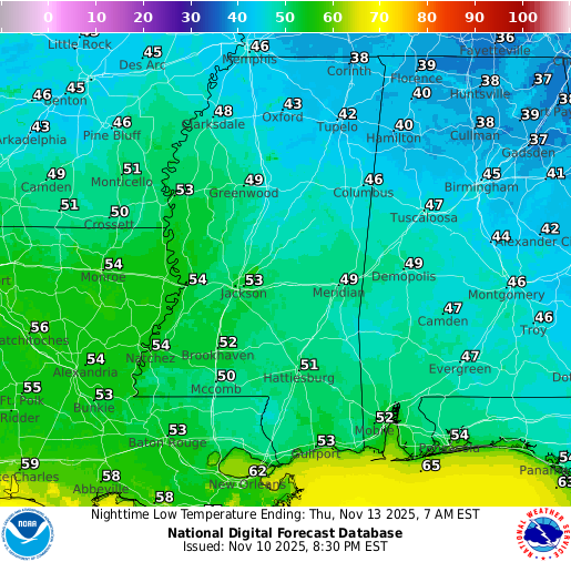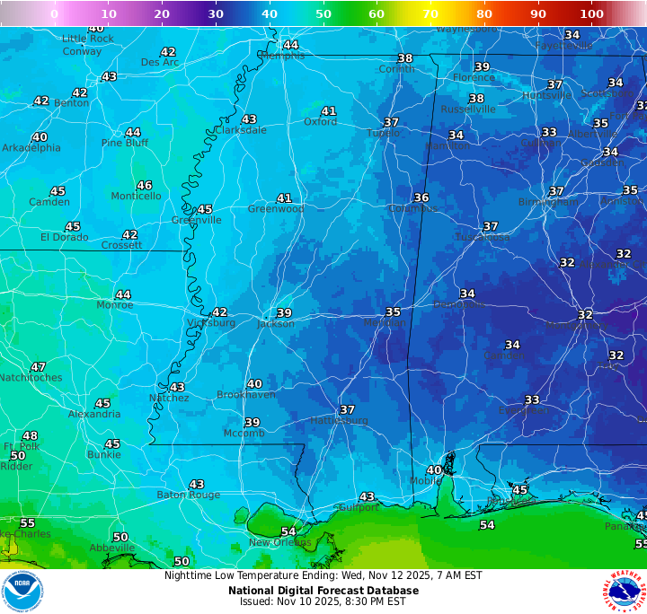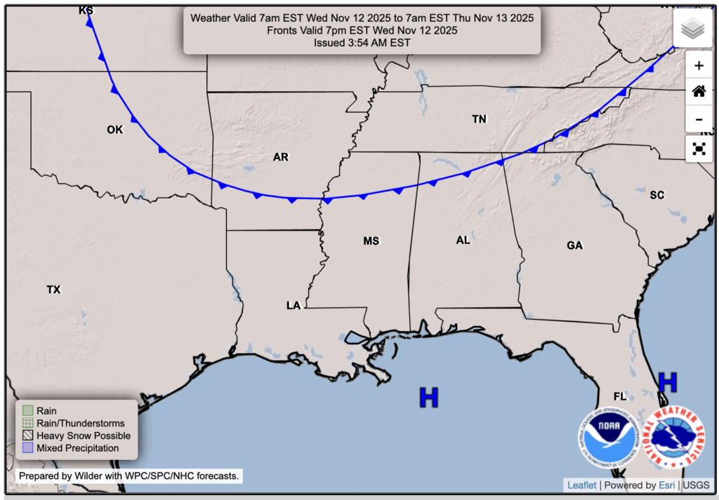 Did your location see temperatures below freezing last night into this morning? Odds are the answer to that question is yes! The trough did indeed reach down into the Pine Belt and brought widespread cold to all of the eastern US, even Florida! Multiple records were broken, including a few spots here in our region. As Nick alluded to in his Facebook post, we tied the record low for Hattiesburg at 26 degrees, but some other “unofficial” spots definitely saw record lows broken.