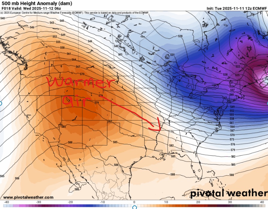 We do have one more night of cold temperatures tonight into tomorrow, but after that we are looking at the large-scale ridging from the west coast making its way to the east, flipping the switch on temperatures. That will also keep it relatively dry through the weekend as well. At least for tomorrow, the surface pattern includes an area of high pressure overhead, and a cold front to the north that will be sliding away.
