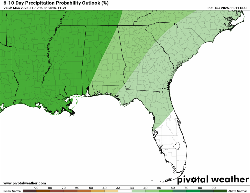 In the 15-day forecast, you can see that we will continue with the dry pattern through the end of the week into the weekend. Temperatures will continue to warm up into the upper 70s and maybe near 80 for some of the days. Into next week, we could see some chances of rain for the early half of the week, which is why the CPC has given us a high chance of above-normal rainfall for our region.