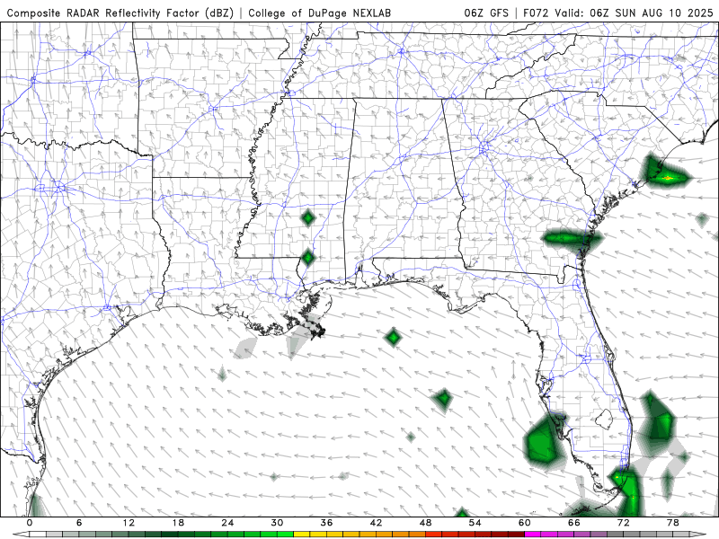 A weak upper-level trough will settle over the Deep South, enhancing lift and destabilizing the atmosphere. This feature, combined with saturated surface conditions and elevated moisture profiles, will sustain daily rounds of showers and thunderstorms. Rain chances will peak between 50–60%, with widespread cloud cover limiting daytime heating. Highs will range from 85°F to 89°F, and dew points will remain oppressive in the mid-70s. Storms may initiate earlier in the day due to increased cloud cover and residual outflow boundaries from previous convection. PWAT values near 2.2 inches suggest locally heavy rainfall is possible, especially in slow-moving or training cells. Flash flooding is not expected, but could occur in urban areas with poor drainage. Winds will be light, generally from the southeast, and overnight lows will stay in the low to mid-70s with lingering showers and elevated cloud cover.