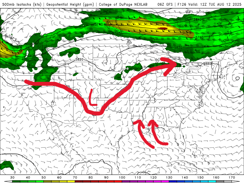 500 mb map for Tuesday of next week from the GFS model. //Courtesy: College of DuPage