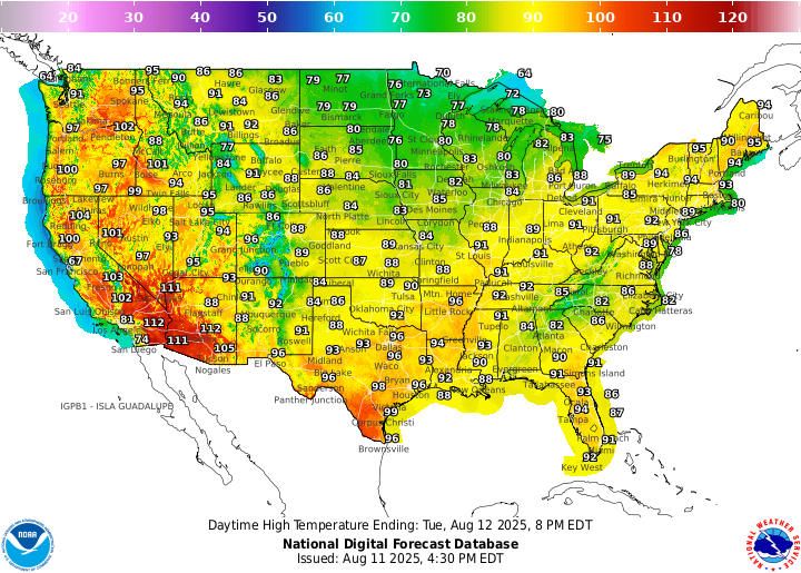 High temperatures today are soaring into the high 80s or 90s for most of the CONUS, asides for those in the desert southwest who are seeing 110 plus! In contrast, those who are under the trough in the northern tier are seeing cooler temperatures, only reaching the 70s or even 60s in some spots!