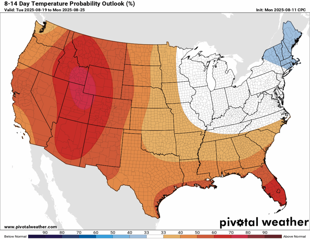 A good amount of ridging will be in place for this week, which will bring up temperatures to above normal for most of the central/east regions. This pattern is expected to flip by the week following, as troughing will take over and bring with it more average or even cooler than normal temperatures.