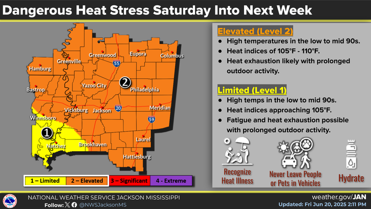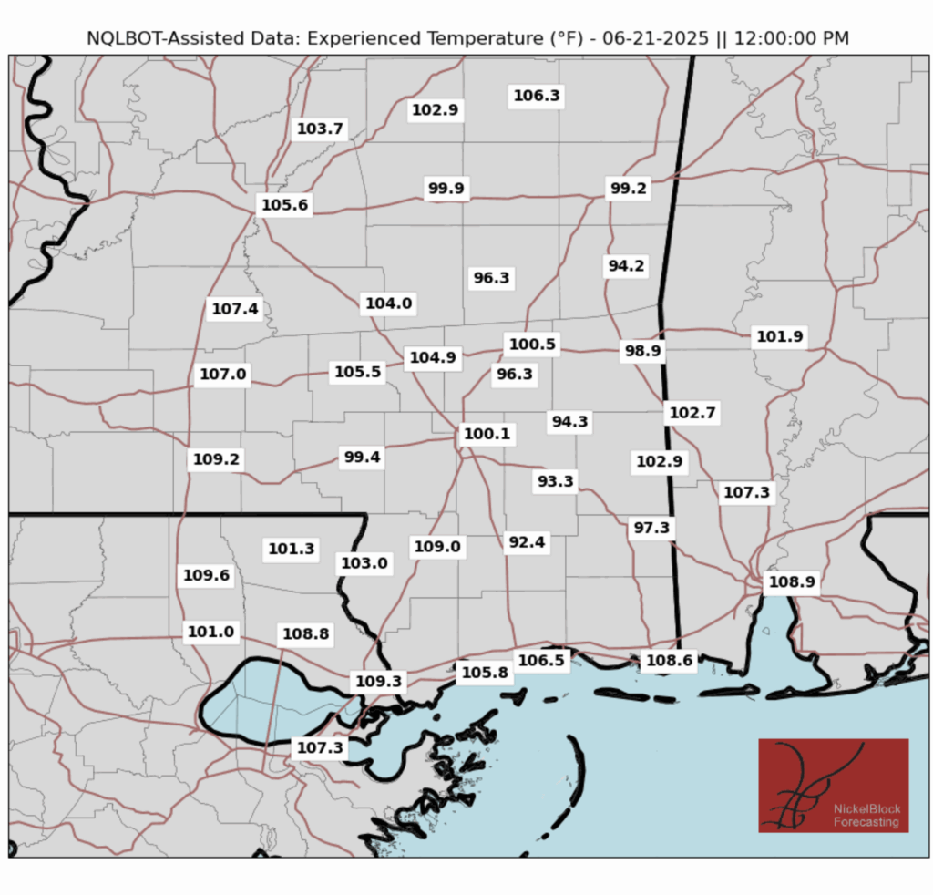 We can see that across the region, the “feels like” temperatures will exceed 100 degrees, and in many places break 105. It is extremely important that if you plan on being outside this weekend and even into next week that you stay hydrated and take plenty of time to rest in a cool spot!