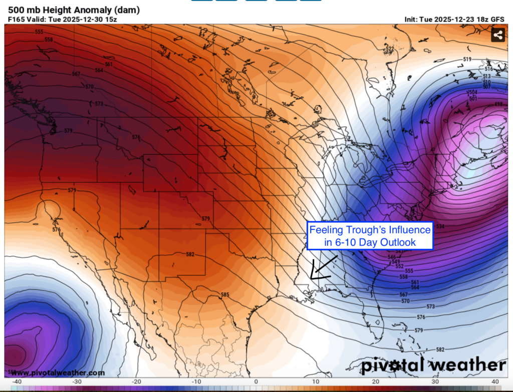 500 mb Height Anomalies Showing Trough’s Influence in 6-10 Outlook // Courtesy: Pivotal Weather
