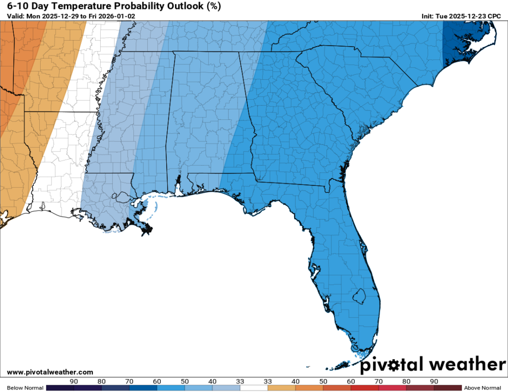 6-10 Day Temperature Probability Outlook from the CPC // Courtesy: Pivotal Weather