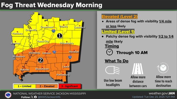 Fog Threat Tonight into Wednesday Morning // Courtesy: NWS Jackson