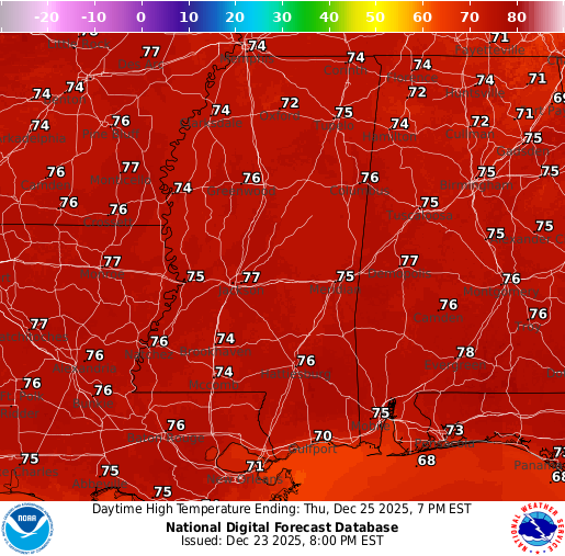 High Temperatures for Thursday 12/25 // Courtesy: graphical.weather.gov