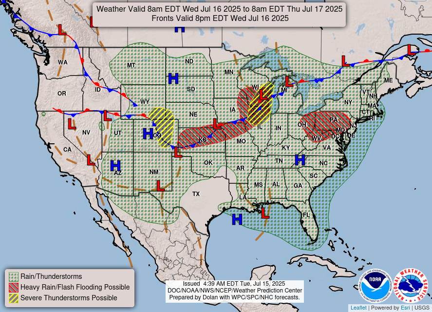 Surface Map for Today 7/16/25 // Courtesy: wpc.ncep.noaa.gov