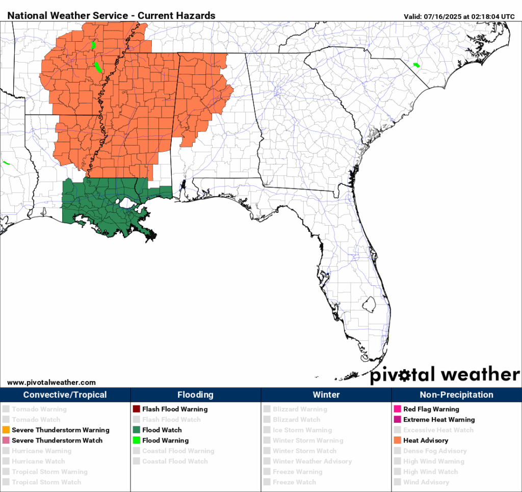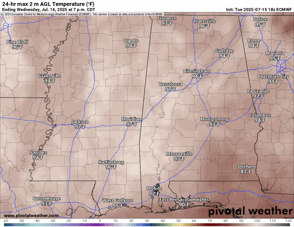 Hot and dry day today, showers in the evening: Southern MS/AL/LA Local Weather Forecast – 7/16/25